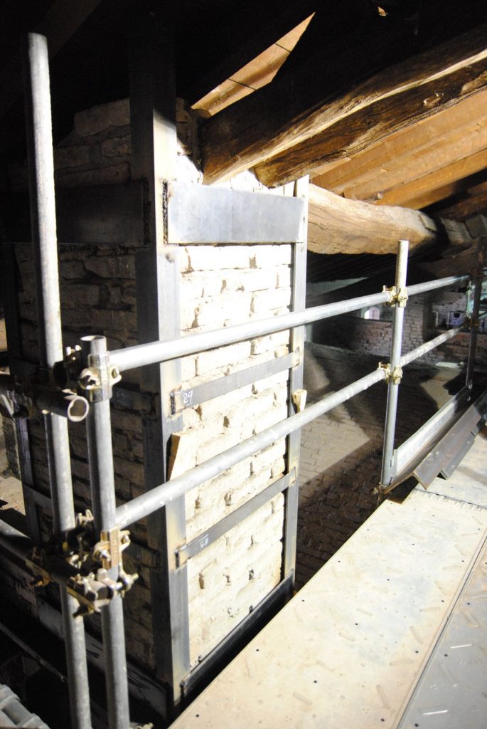 Sempre nel sottotetto è stato innalzato un muro (prima era presente la struttura ad arco che è ancora visibile) per rafforzare la parte muraria: